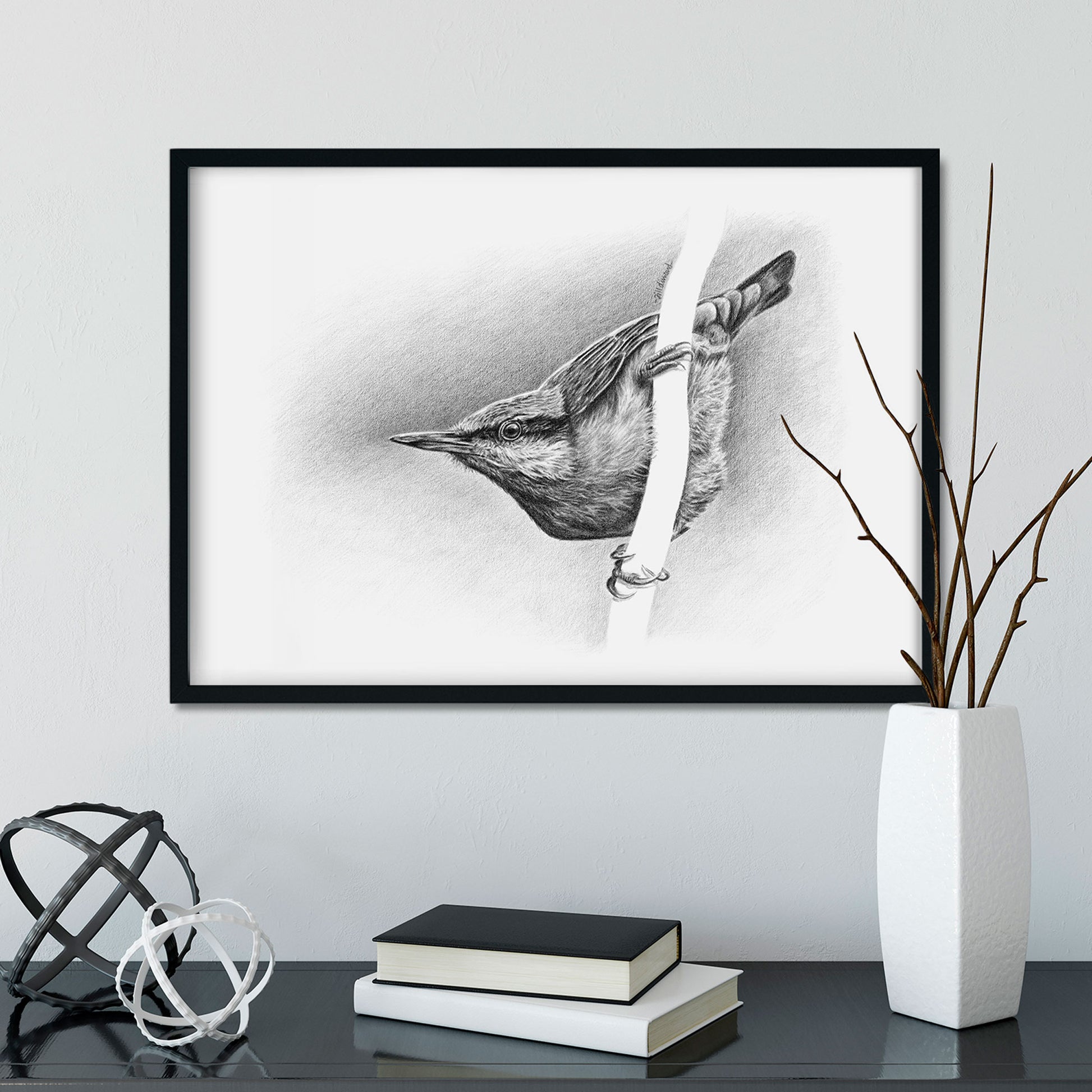 Originally hand-drawn in pencil by Jill, our Eurasian nuthatch fine art prints are now available! We love it when we manage to spot one of these cute little guys up in the trees - they're wonderful birds! Perfect for any bird lover's wall! Here's what you get: