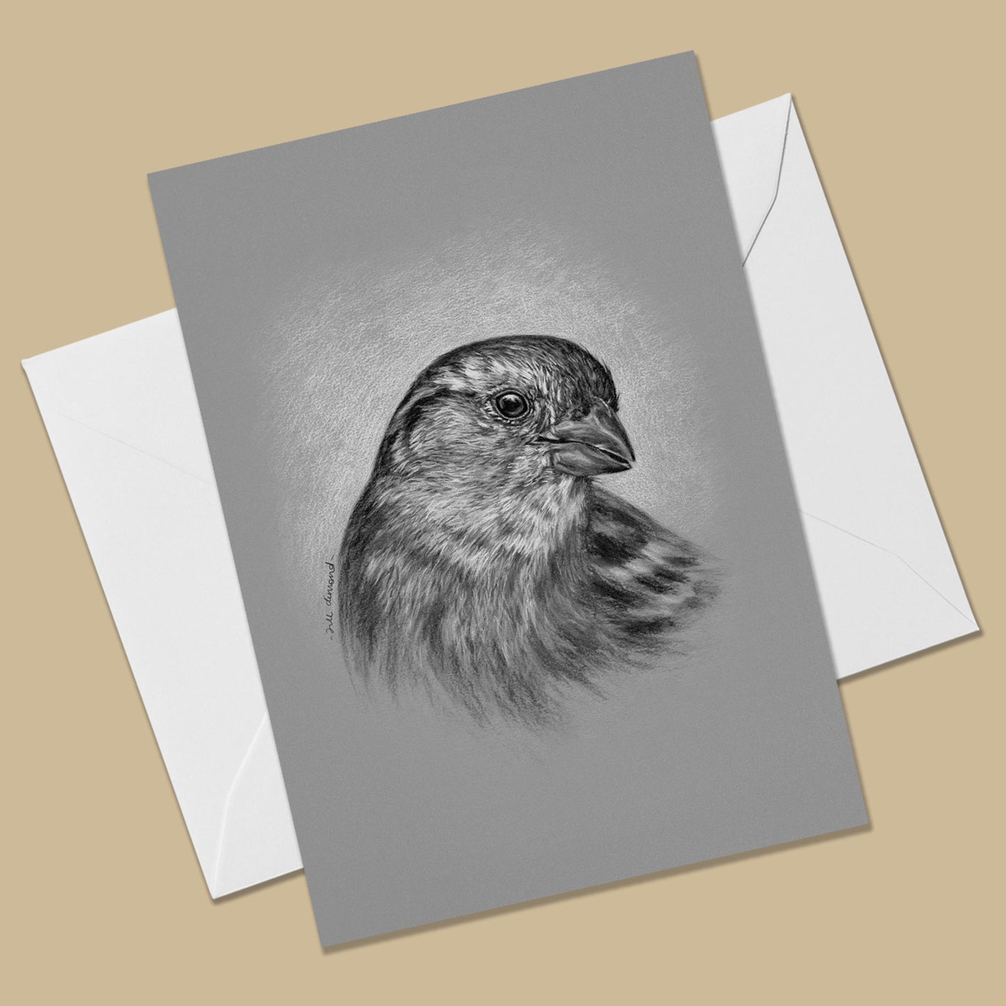 Celebrate the little garden birds with our gorgeous female house sparrow greeting card! (Passer domesticus) Such great little birds - and always entertaining to watch in the garden! Originally drawn by Jill in charcoal, this card would be perfect for any bird lover.