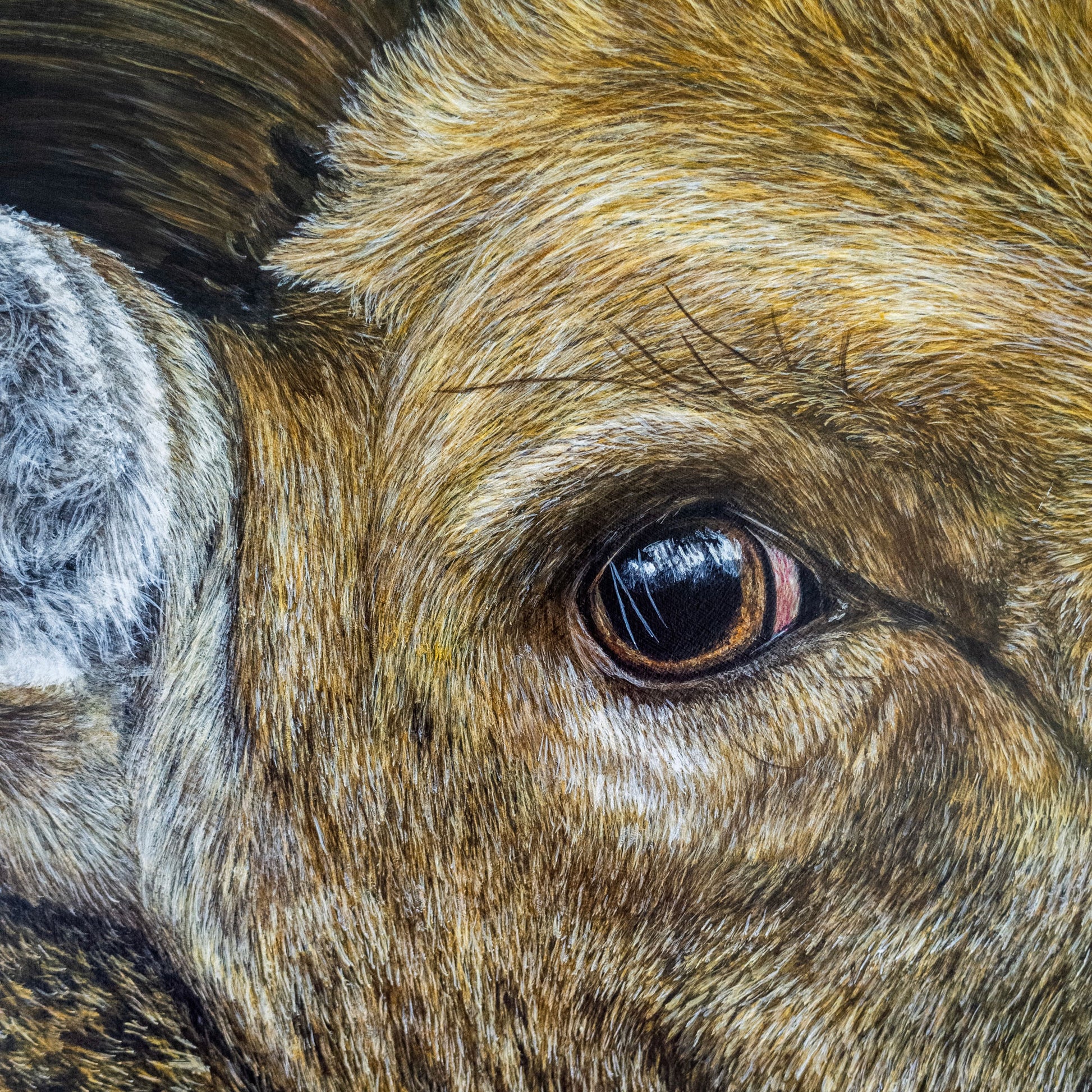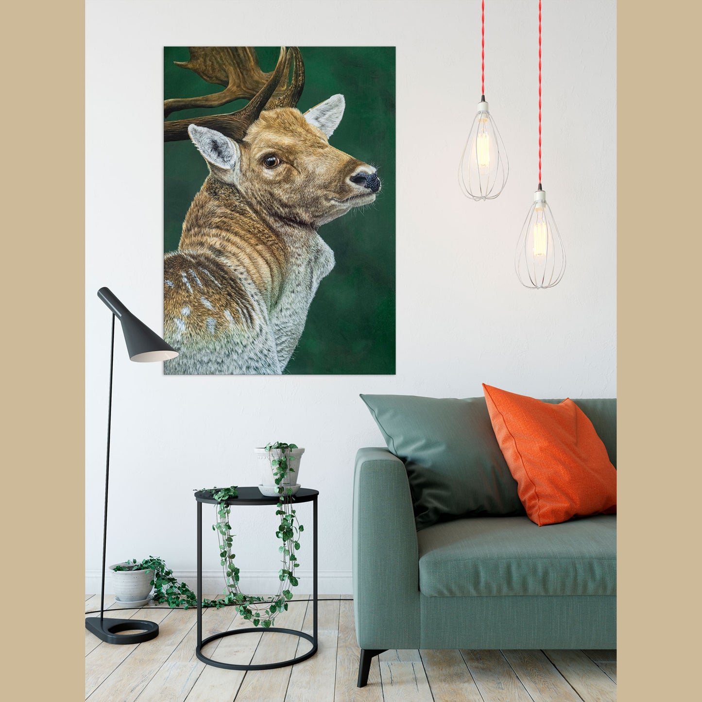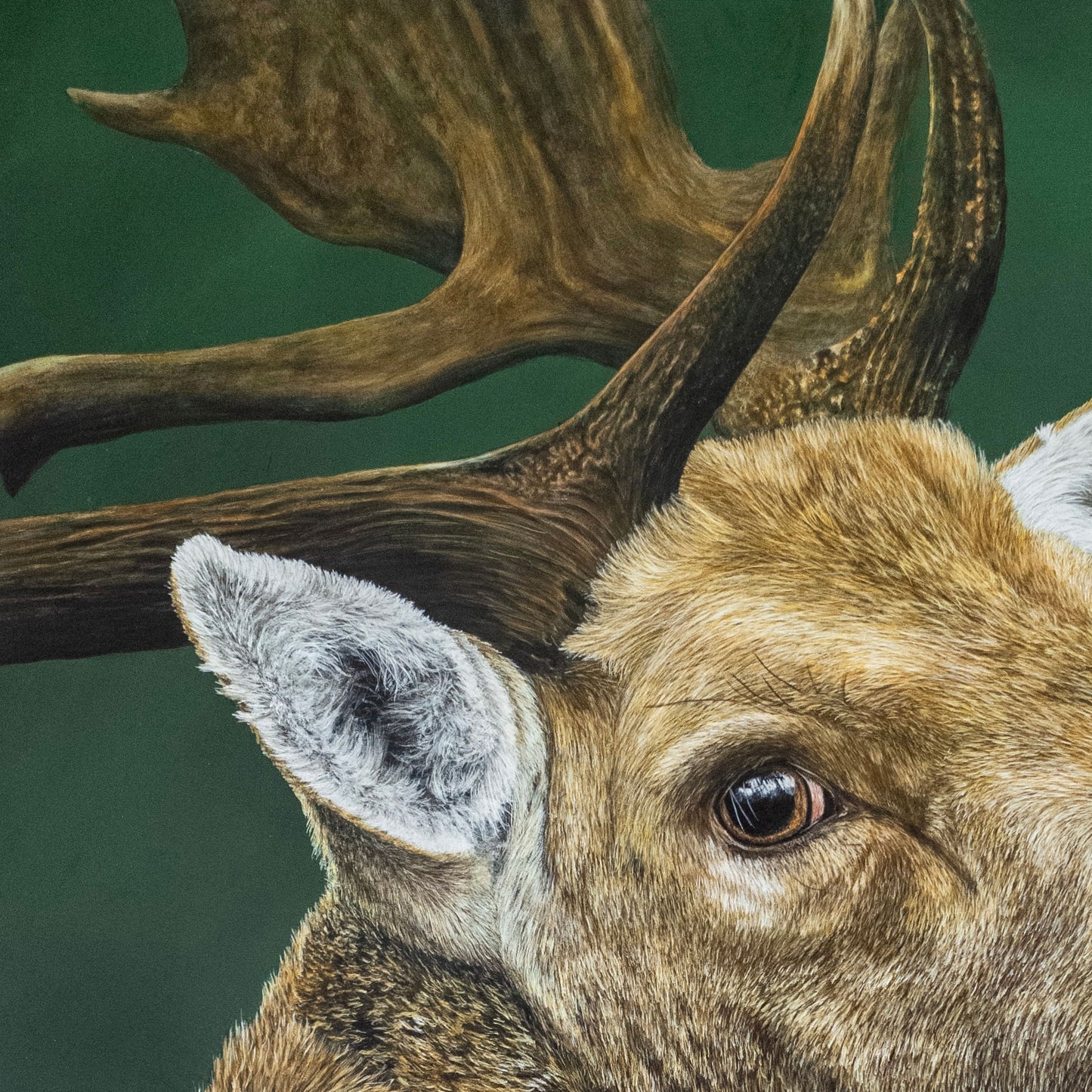 This one is to celebrate the fallow deer buck, and what a handsome fella he is! He was created over many, many hours by Jill, using professional acrylic paints, and is ready to go straight on your wall. Here's what you get: