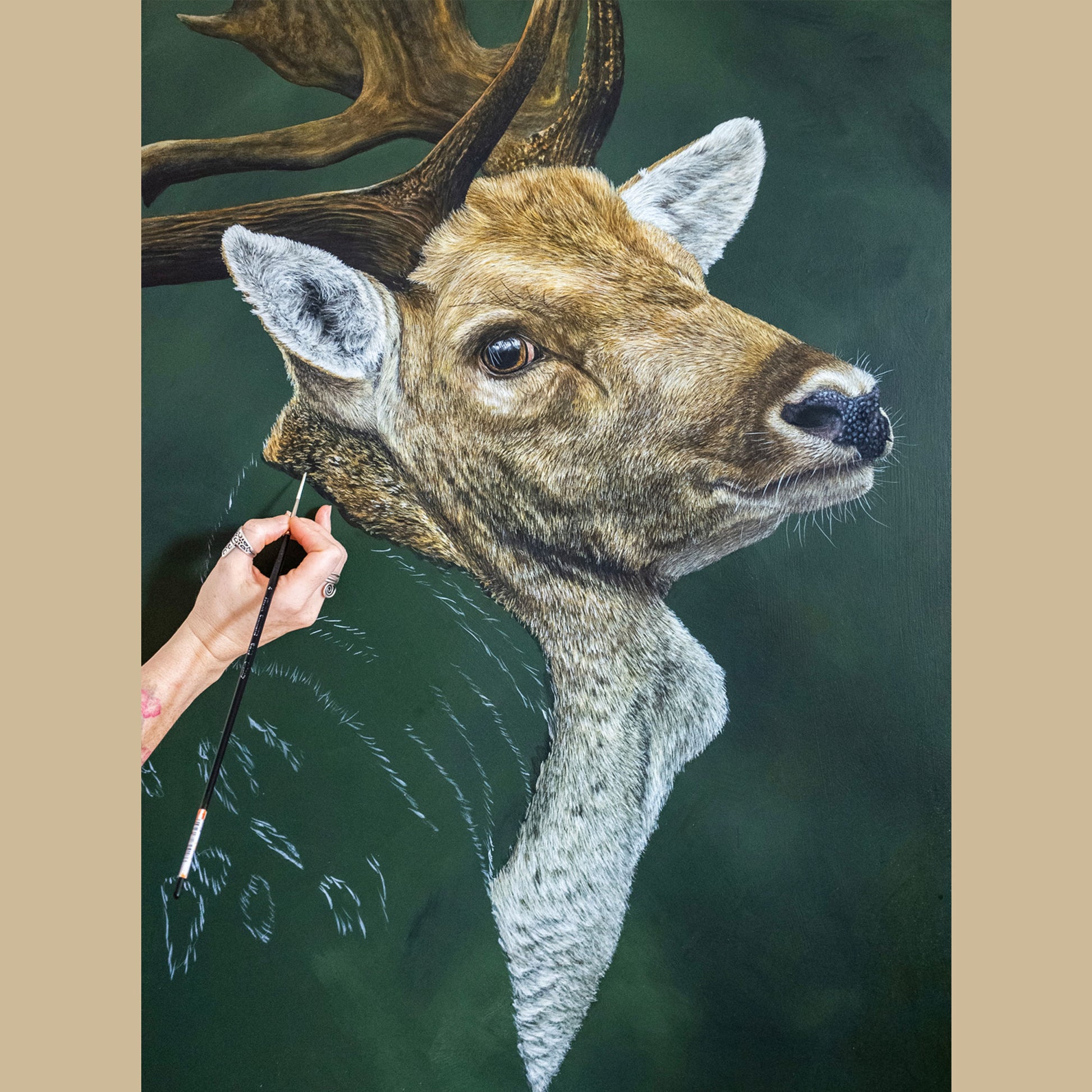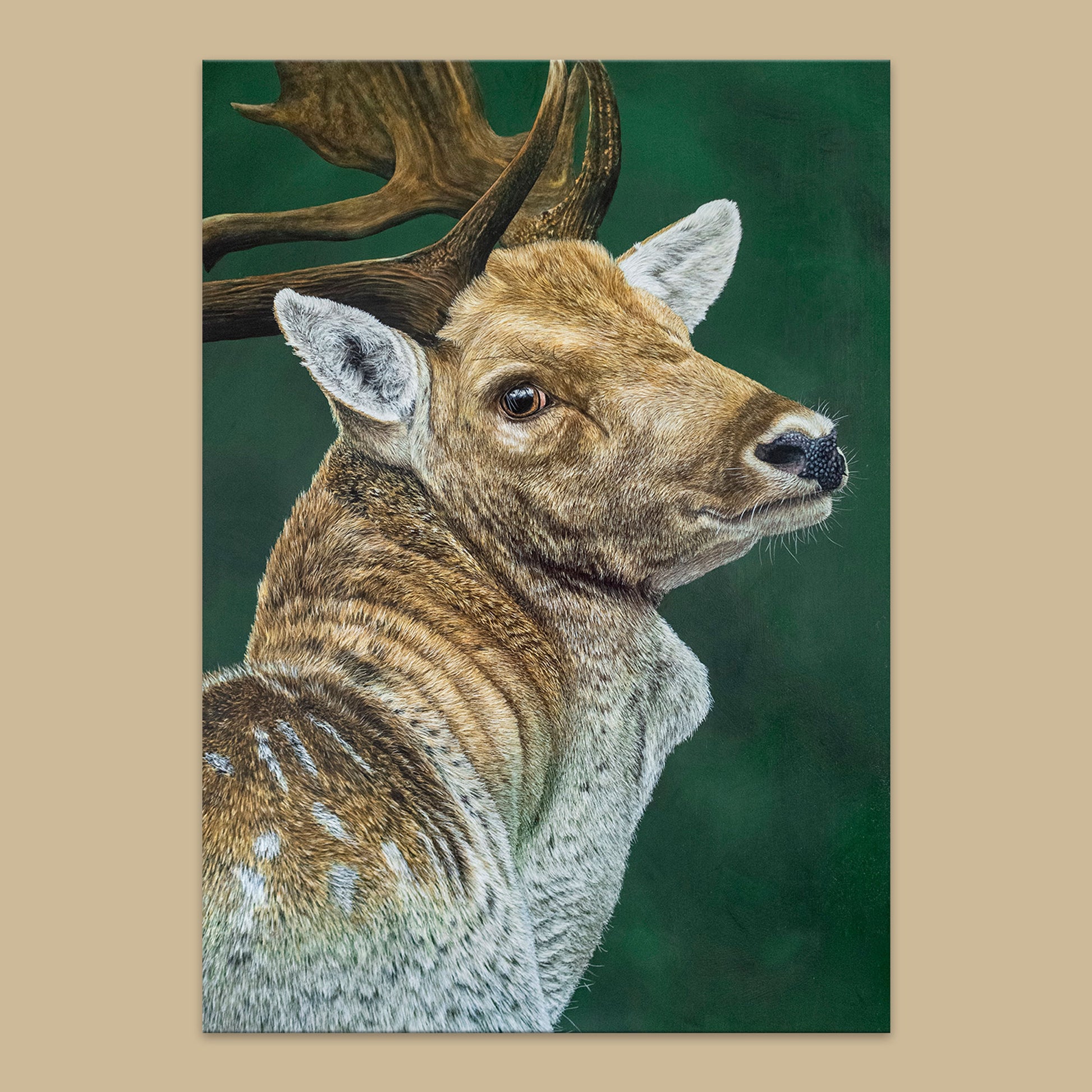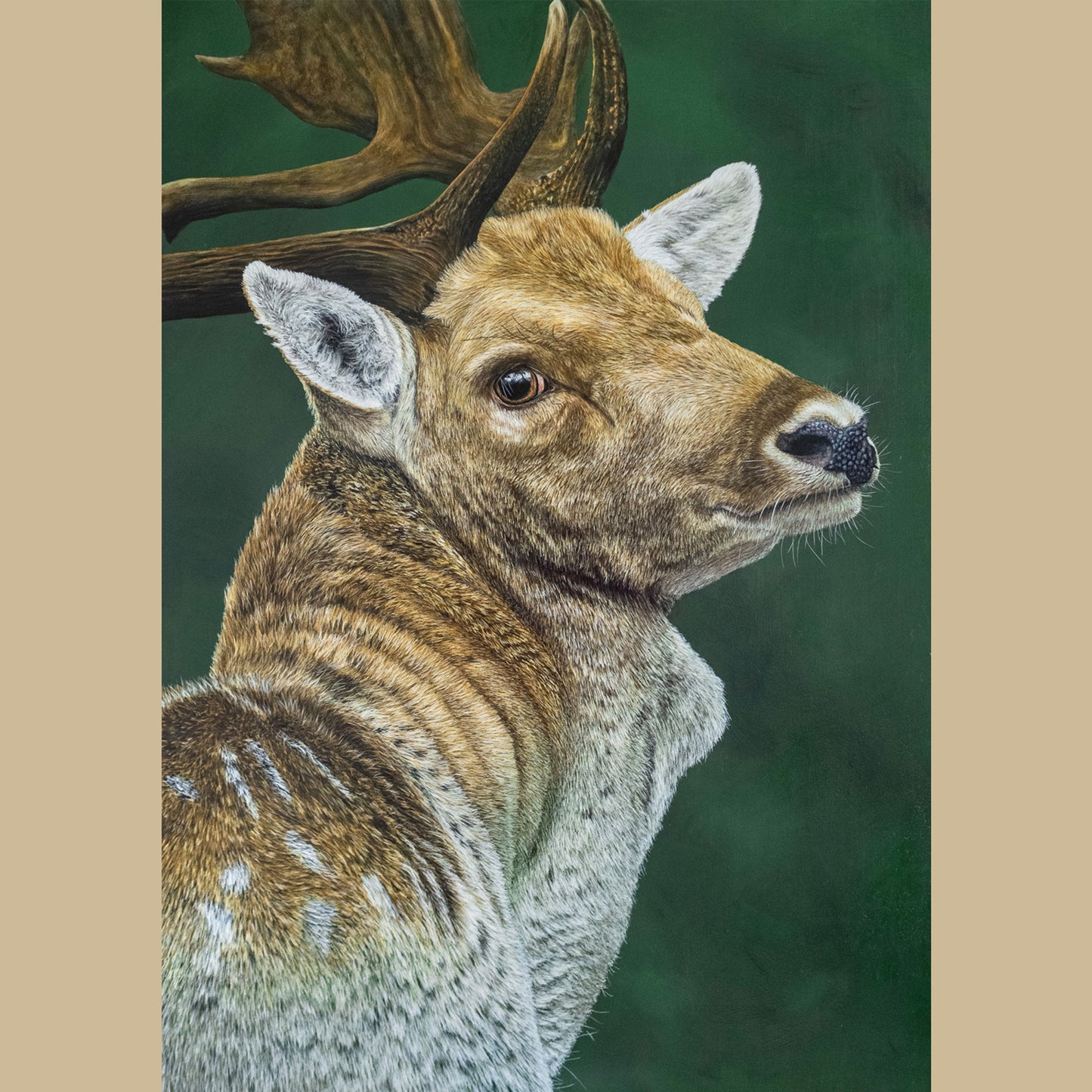 - A piece of original wildlife art, featuring a handsome fallow deer buck (dama dama), painted in acrylics on A1 cradled board by British artist Jill Dimond. You won't find this anywhere else in the world!