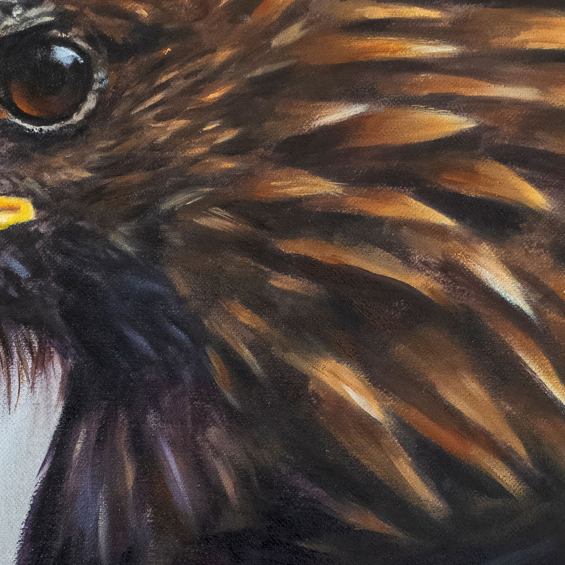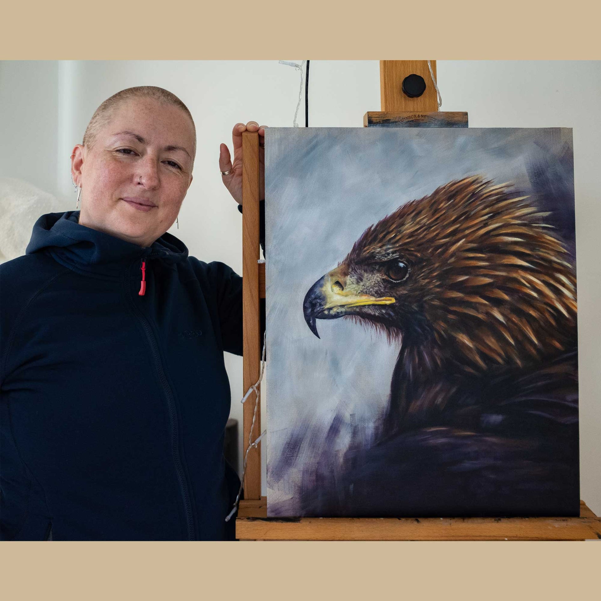 - A piece of original bird art, featuring a beautiful golden eagle (aquila chrysaetos). Painted in oils on linen-covered board by British bird artist Jill Dimond.