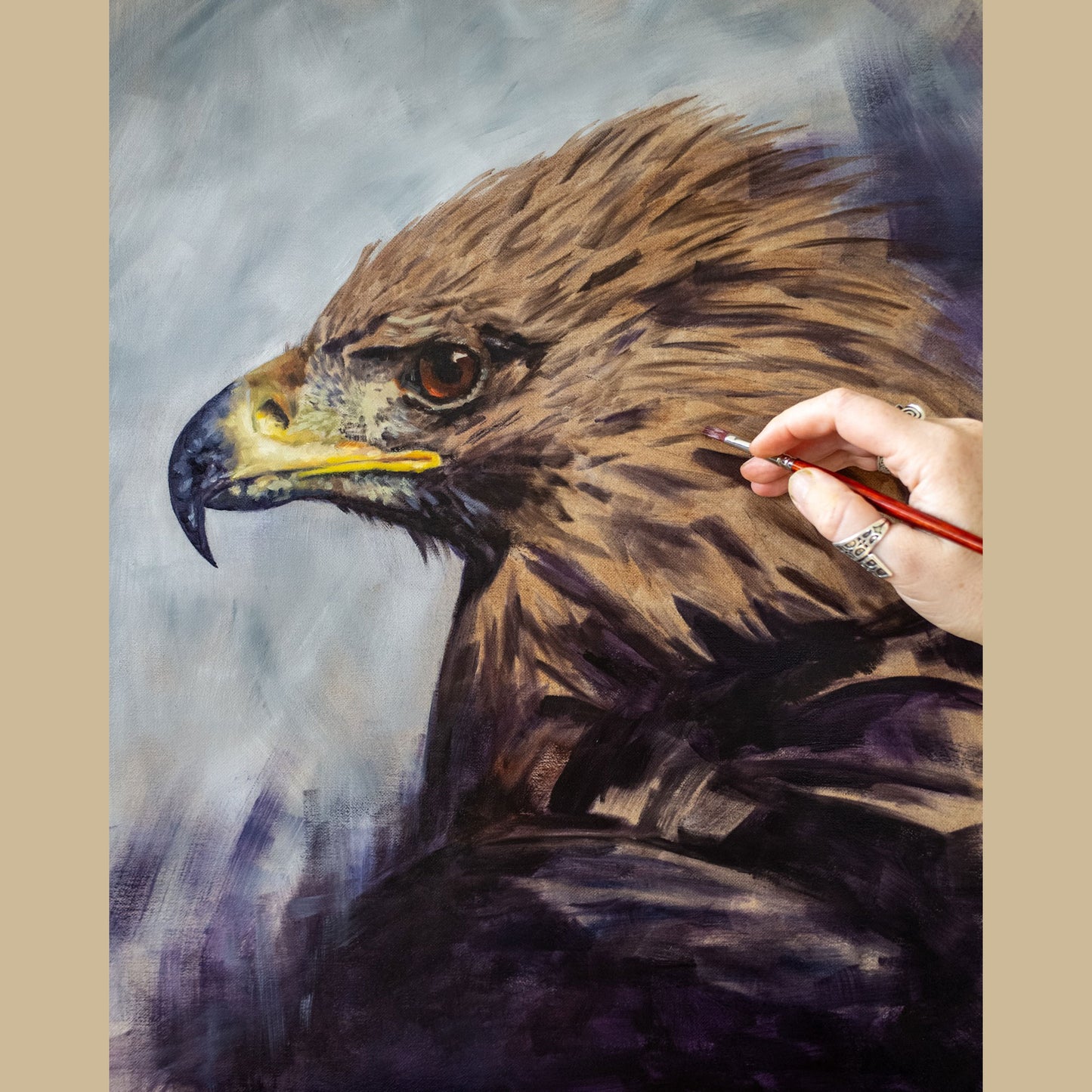 We're always in awe watching the majestic golden eagles when we visit the Isle of Mull, so this original oil painting by Jill is inspired by those incredible, unforgettable experiences! Featuring a stunning portrait of this amazing bird of prey (aquila chrysaetos), we hope you can feel some of the wonder of the golden eagle with this painting on your own wall! Here's what you get: