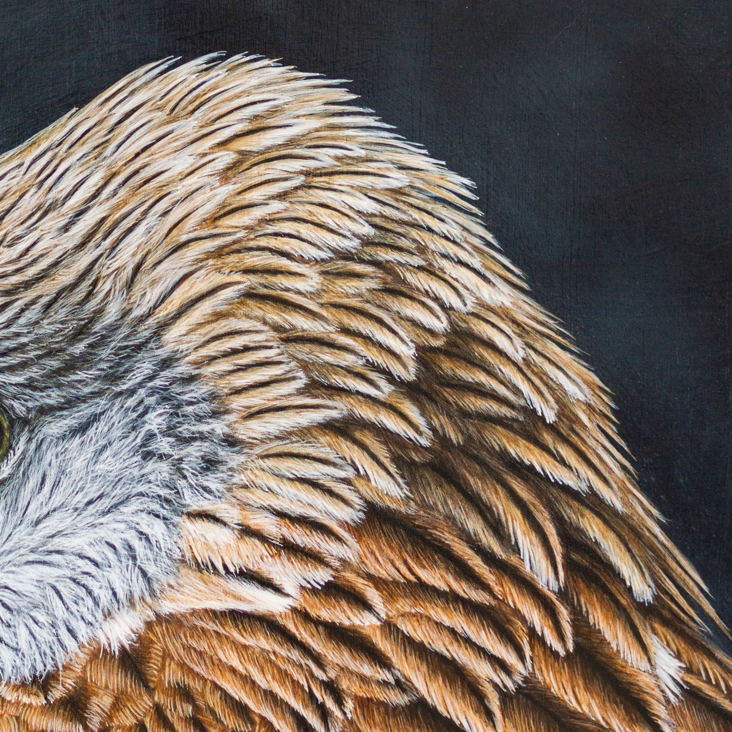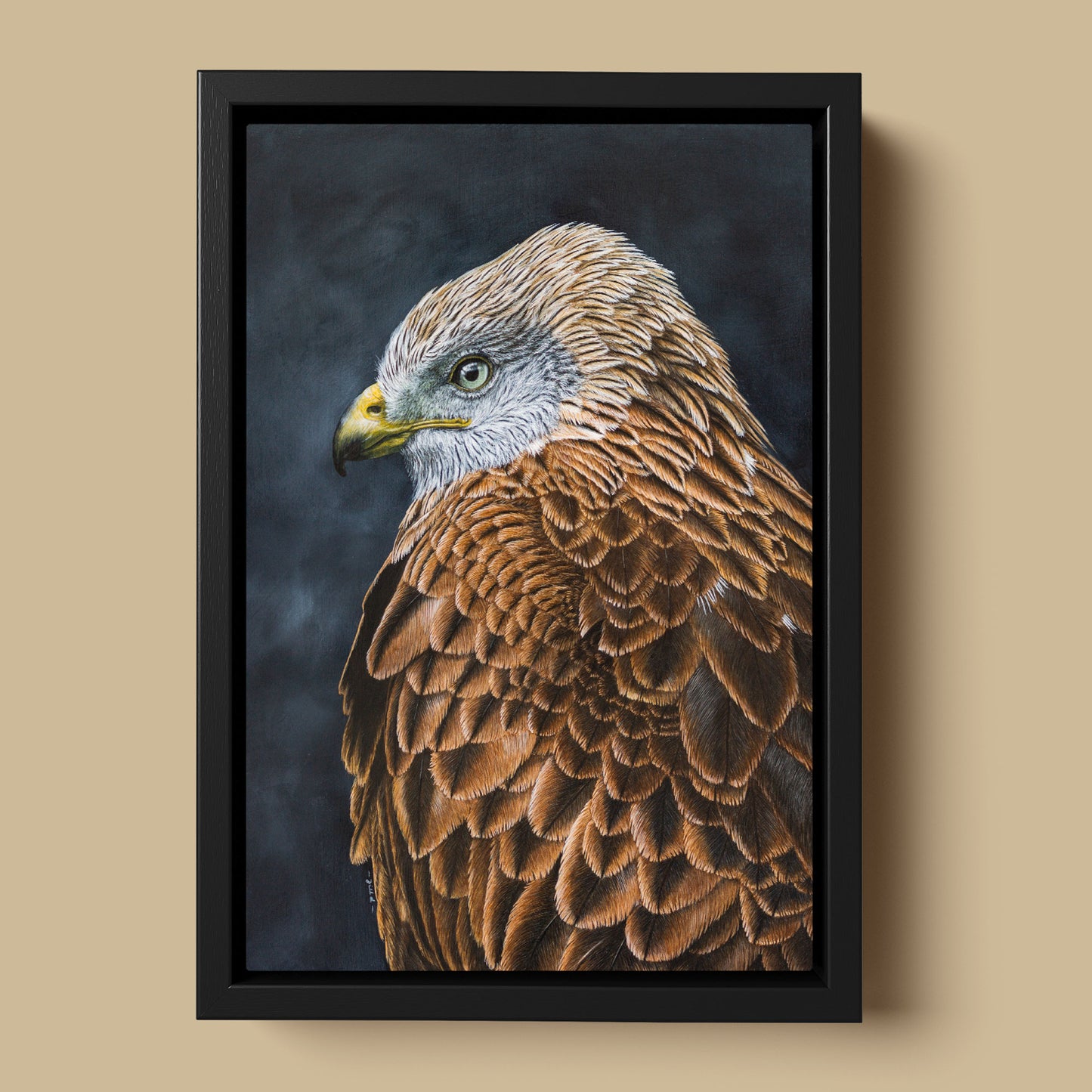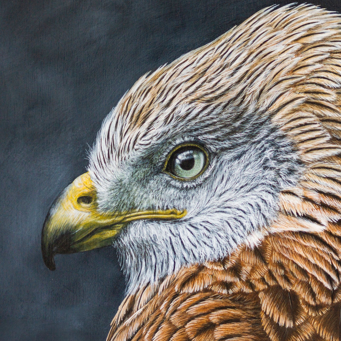 - A piece of original bird art, featuring a red kite portrait (milvus milvus), painted in acrylics on cradled board by British artist Jill Dimond.