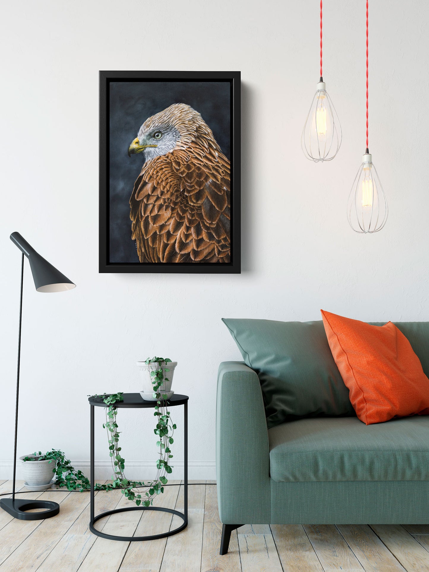 This wonderful red kite has been created by Jill using acrylic paints - and what stunning birds of prey they are! This is the original painting and it has been framed in a black wooden floating frame, ready to go straight on your wall. Here's what you get: