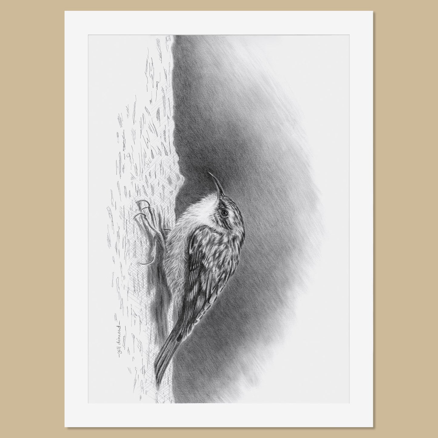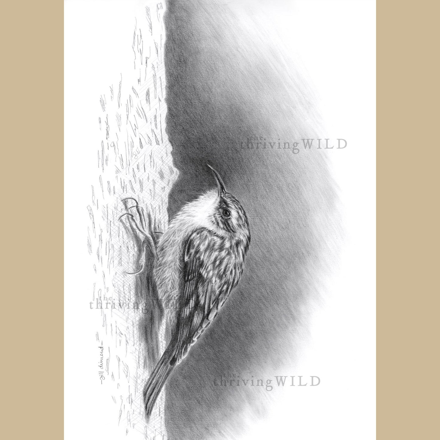 - A piece of original wildlife art, featuring a gorgeous treecreeper - hand drawn by British artist Jill Dimond. You won't find this anywhere else in the world!