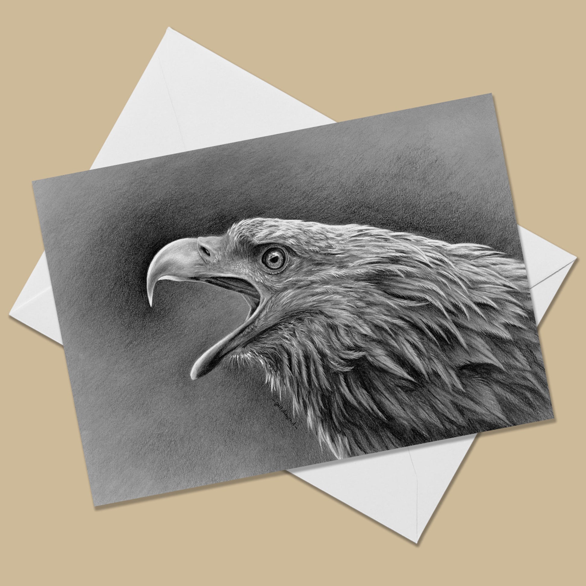 Send a stunning birthday card to a bird of prey lover with our white-tailed eagle greeting card. (Haliaeetus albicilla) What incredible eagles they are! Featuring a gorgeous charcoal drawing by Jill, this card is sure to make anyone's day. Perfect for any occasion!